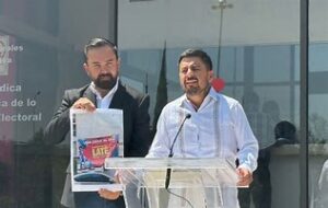 Y frente a la Oficialía de Partes del Instituto, Guillermo Santiago Rodríguez denunció que se ha observado lonas en la demarcación “promocionando su nombre, promocionándole a ella y utilizando los recursos públicos en su beneficio”.