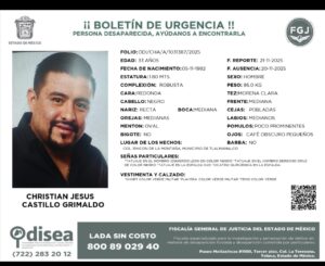 debido a que Castillo Grimaldo no llegó a su domicilio particular y desconocían su paradero.Una vez detenido, Christian Castillo fue trasladado a los juzgados del penal de Neza bordo, donde permanece detenido